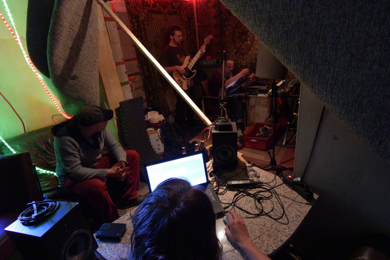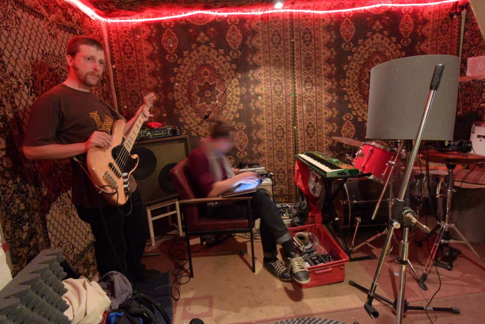 Die KDJ-Studio-Combo setzte sich aus hochspezialisierten aber öffentlichkeitsscheuen Studiotieren zusammen, die anlässlich des KDJ in ein oder zwei Tonstudios gesperrt werden, wo ein Betreuer die Aufnahmetaste drückt und sich dann schnell entfernt. In quasihypnotischen Sessions vertiefen sich die kantigen Charakter dort unter Benutzung ihrer Instrumente völlig in der gemeinsamen Verschränkung von Harmonie und Rhythmus. Wo würde das auch besser gehen als in einem Studio - oder hinter einer Projektionsleinwand?