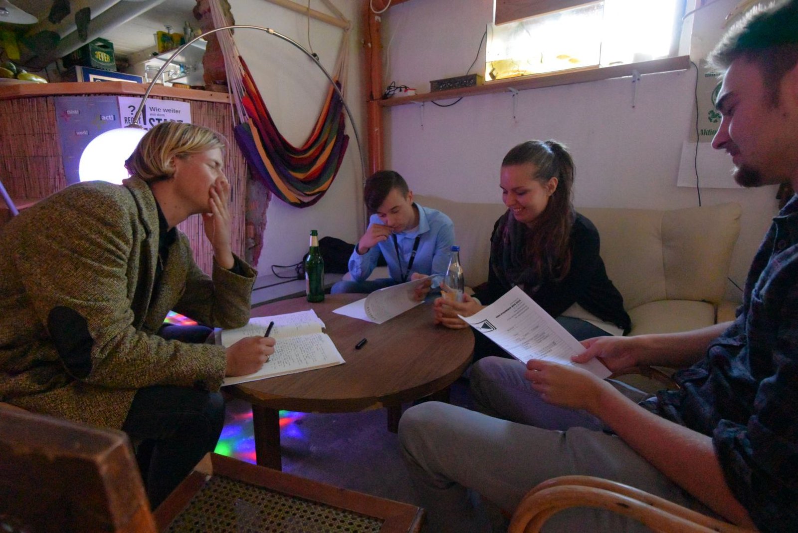Das Jenaer Trio Fishes hat sich in den letzten Jahren besonders durch tragende Stimme, verträumte Violine und liebliche Pianoarrangements in der Stadt einen Namen gemacht. Jetzt laden sich die Fische auch noch das weiße Kaninchen Smu und den verrückten Hutmacher Knarsn zum Tee. Bekanntlich liegen Liebe und Wahnsinn ja nah beieinander...
